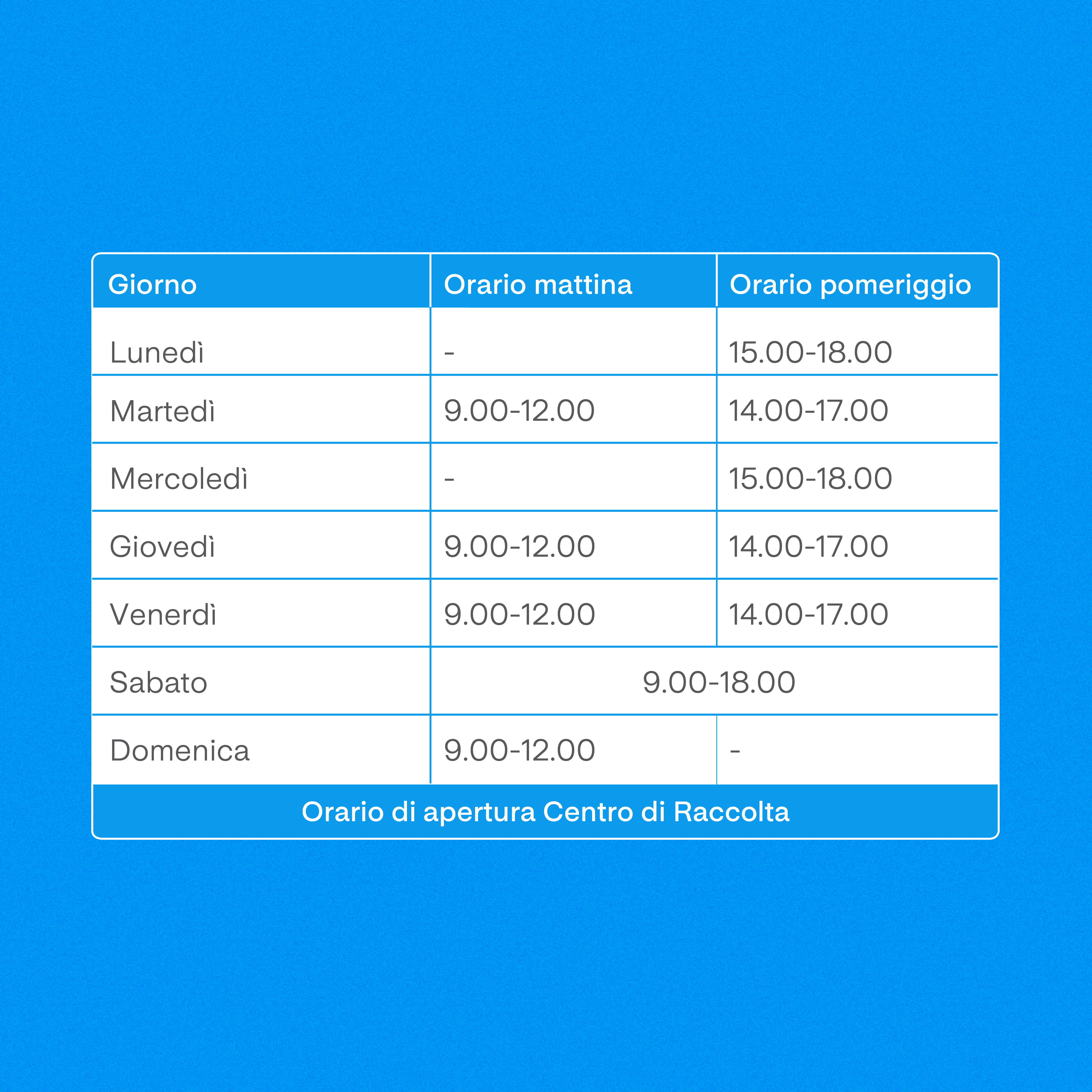 Nuovi orari Isola Ecologica - Centro di Raccolta