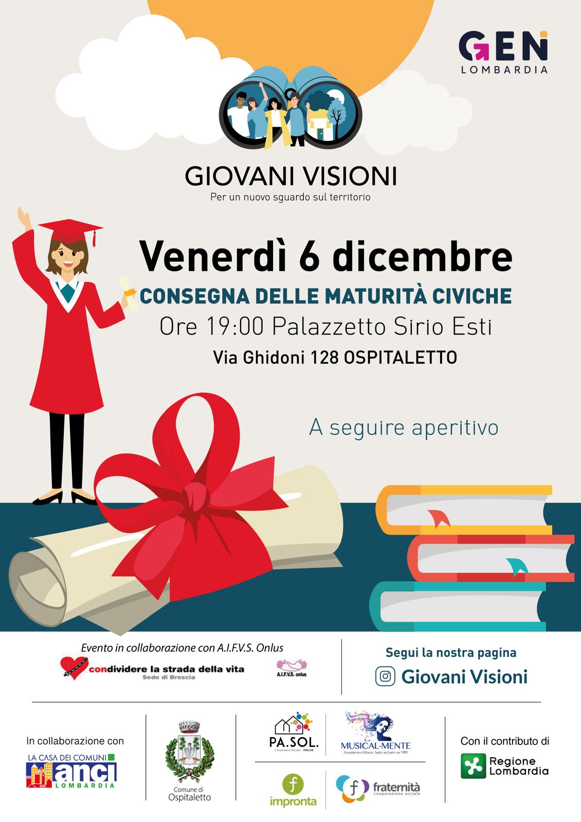 A fare da cornice alla cerimonia intitolata “Maturità Civica”, a seguito di un momento istituzionale, ci sarà l’intervento dell’Associazione “CONdividere la strada della vita”. La serata proseguirà con un aperitivo offerto a tutti i partecipanti, e sarà ulteriormente arricchita e allietata dalle performance dei ragazzi del progetto "Giovani Visioni".