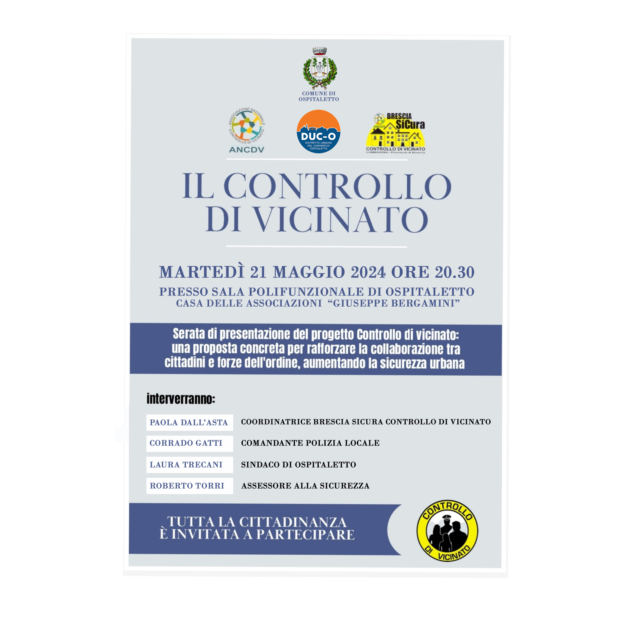 Martedì 21 Maggio 2024 ore 20:30 presso sala polifunzionale di Ospitaletto casa delle associazioni “Giuseppe Bergamini”: