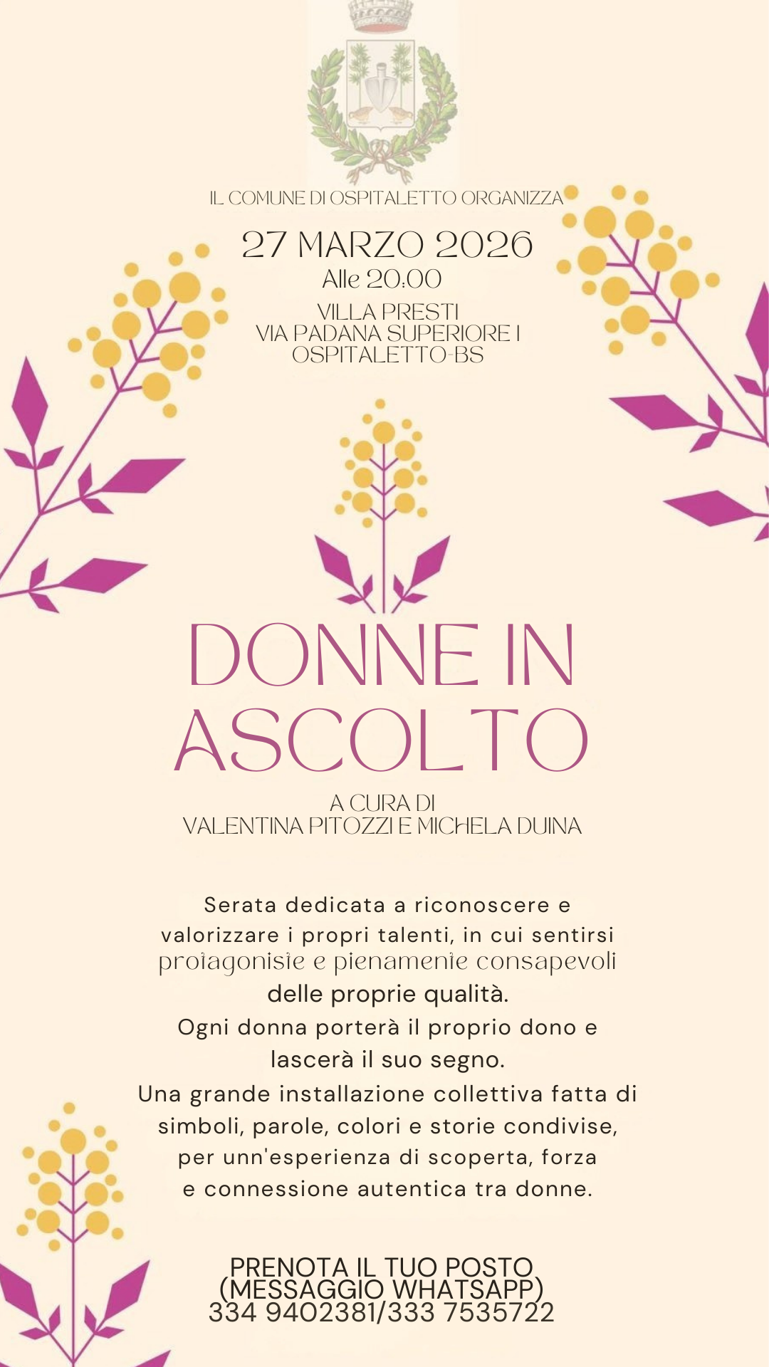 "DONNE IN ASCOLTO” IN VILLA PRESTI - VENERDI' 27 MARZO 2026