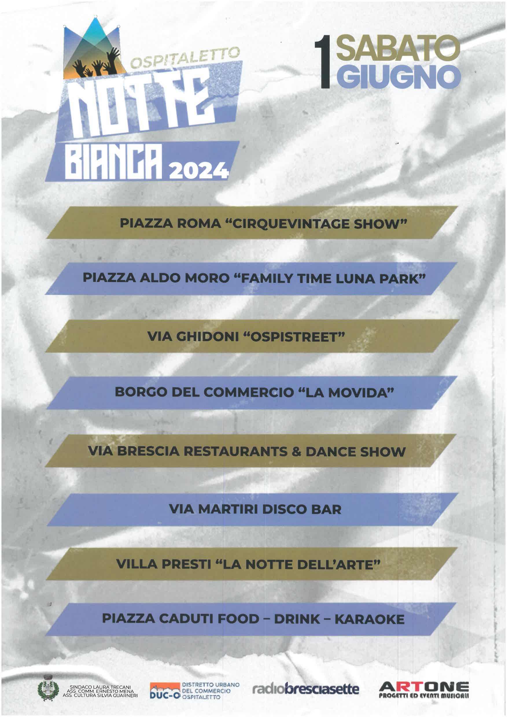 Annuncio della Notte Bianca 2024 del Comune di Ospitaletto.